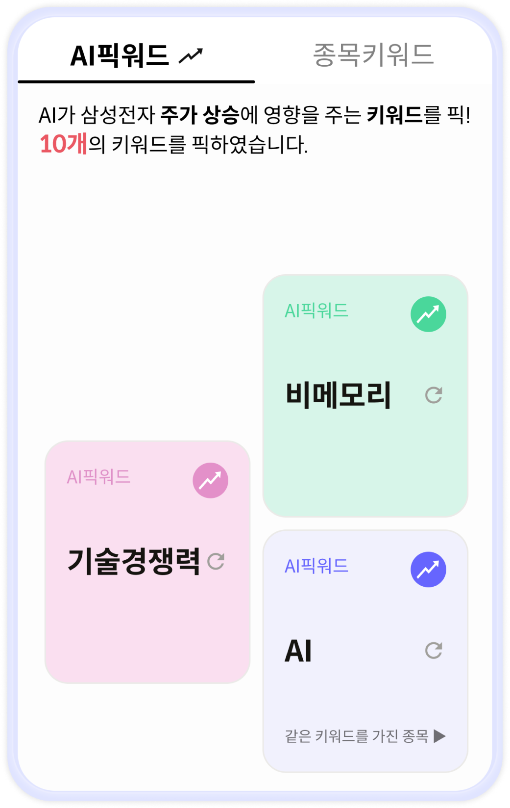주가 상승에 영향을 주는 키워드만 픽! AI가 실시간으로 문서를 수집하고 주가에 영향을 주는 키워드를 분석해, 주가 상승에 영향을 미치는 핵심 키워드와 코멘트를 제공합니다.